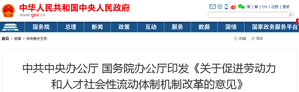 12月25日,中辦、國辦《關于促進勞動力和人才社會性流動體制機制改革的意見》正式公布。