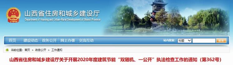 關于開展2020年度建筑節能“雙隨機、一公開”執法檢查工作的通知